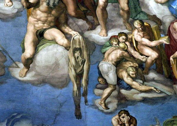 Цензура того времени смогла оценить лишь то, что фреска чересчур откровенна. От Микеланджело потребовали изменения картины. Следовали прикрыть чресла набедренными повязками и фиговыми листками. Эту работу пришлось выполнить Даниеле да Вольтеру, который получил за свою работу прозвище Порточник. Позднее некоторые фрески были возвращены к своему первоначальному виду.