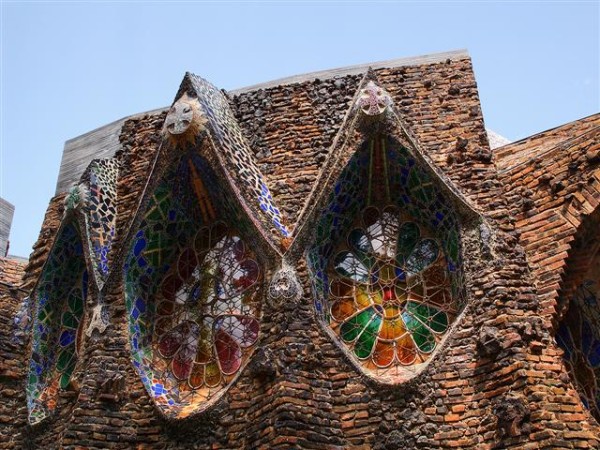 Фасад украшен многоцветной, сверкающей под южным солнцем мозаикой, необычно искривленными линиями и очень выразительными растительными образами. Крыша с арками похожа на спину дракона. Среди декора – растительные мотивы и замысловатые фантазийные узоры из листьев и стеблей.