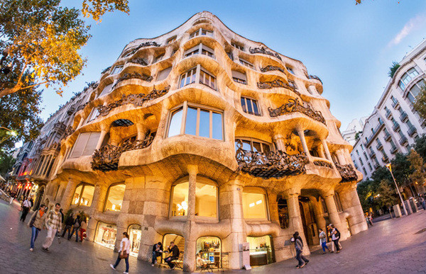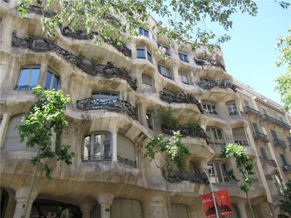 3. Следующий дом Гауди – Дом Мила с волнистым фасадом и узнаваемыми оконными проемами. Местные жители назвали это здание «Каменоломней». Дом находится на углу проспекта Пасео де Грасия: сооружение символизирует собой подвижность, текучесть, изменчивость окружающего мира и прочную связь с природой. Этот дом Гауди примечателен не только неровным фасадом и лепниной, но и отсутствием несущих стен, а также грамотно продуманной естественной системой вентиляции.