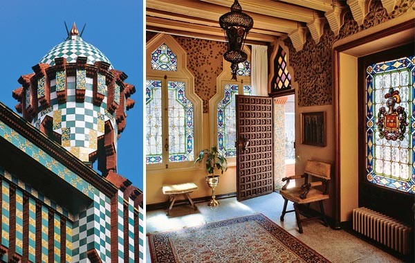 На кровле до сих пор стоят филигранные мавританские башенки, а выйдя, в сад, вы увидите кованую ограду в стиле ар-нуво. Стены были возведены из натурального камня, отделкой служили пестрые изразцы. Именно с этого здания архитектор начинает часто использовать керамику и лепнину. Несмотря на кажущуюся простоту, этот дом Гауди в Барселоне представляет собой замечательный образец стиля модерн и бесценное наследие мастера.