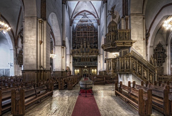 Это самое большое строение эпохи средневековья не только Латвии и Риги, но и всей Прибалтики. Как многие немецкие храмы того времени, церковь была выполнена в готическом стиле. Создателем строения был сам епископ – основатель Риги, он пристально следил за ходом стройки и давал свои указания. Строился храм с 1211 по 1270 год. В 16 веке церковь решили возвысить ещё больше и для этих целей стали устанавливать деревянный шпиль. Но у мастеров что-то не получилось и конструкцию пришлось разобрать, а спустя 2 столетия, на месте разрушенного шпиля, был построен большой купол в стиле барокко. Внутреннее убранство храма выполнено в готическом жанре с элементами барокко. В одном из залов до сих пор играет огромный орган, что был установлен в конце 19 века. Насладившись великолепием собора можно зайти в рижский Исторический и Мореходный музеи. Они находятся на территории храма. В них сосредоточены множество экспонатов рассказывающих об истории самой Риги и мореходства.