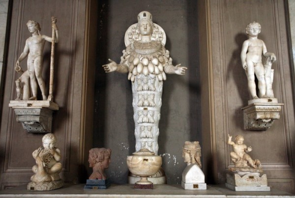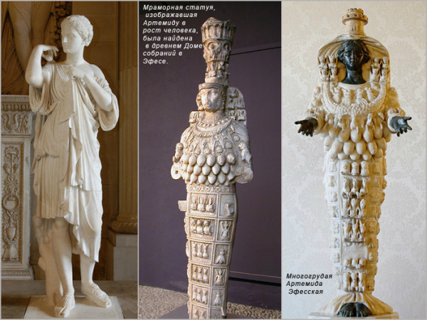 В ходе археологических раскопок нашли и статую богини. Она была сделана из мрамора с наличием нескольких рядов грудей. По другим предположениям эти образования представляли собой бычьи яички. Такой образ Артемиды «Полимастос» обозначал изобилие. Есть ещё одна гипотеза, что это не вовсе грудь, а всего лишь своеобразное украшение.