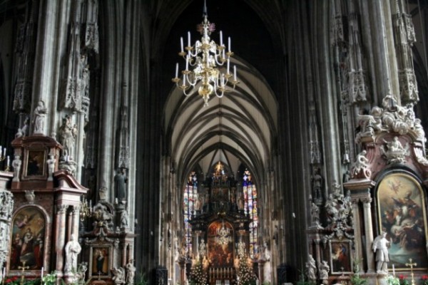 В Вене в Австрии находится удивительный и бесспорно самый красивый городской собор – Собор Святого Стефана. Хотя внешне он напоминает иголку, внутри скрывается католический храм, признанный национальным символом страны. Этот собор расположился на катакомбах, где были похоронены около 11 тыс. человек, включая не одно поколение из династии Габсбургов. Удивительным остается тот факт, что у каждого захороненного представителя этой семьи нет сердца, так как все они хранятся в Августинской церкви.