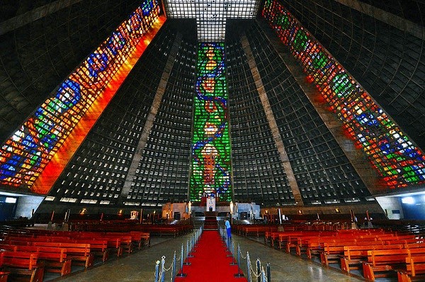 Еще одним достаточно интересным для туристов местом будет – Кафедральный собор. Этадостопримечательность Рио-де-Жанейро имеет очень интересный современный внешний вид, напоминающий бетонный блок, что окутан строительными лесами. Здание поражает своей красотой и габаритами, создается впечатление эта восьмидесятиметровая постройка, является главной во всем городе. Тут же расположен Музей религиозного искусства, который находиться в подвале под собором.