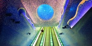 Станция-победитель является одной из самых глубоких в мире, а ее стены выложены мозаикой разных оттенков синего, благодаря чему создается эффект погружения на морское дно.